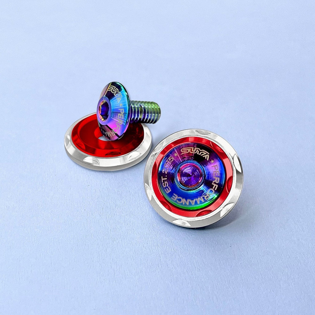 Upgrade your engine bay detailing with precision-machined hardware. The Suya CNC M6 Dress Up Washer & Bolt Set is designed for Subaru enthusiasts who want to add a subtle but high-quality finishing touch to their engine bay. Crafted from premium CNC-machined aluminium, these bolts and washers provide a sleek, anodized alternative to factory hardware — combining strength, corrosion resistance, and style.