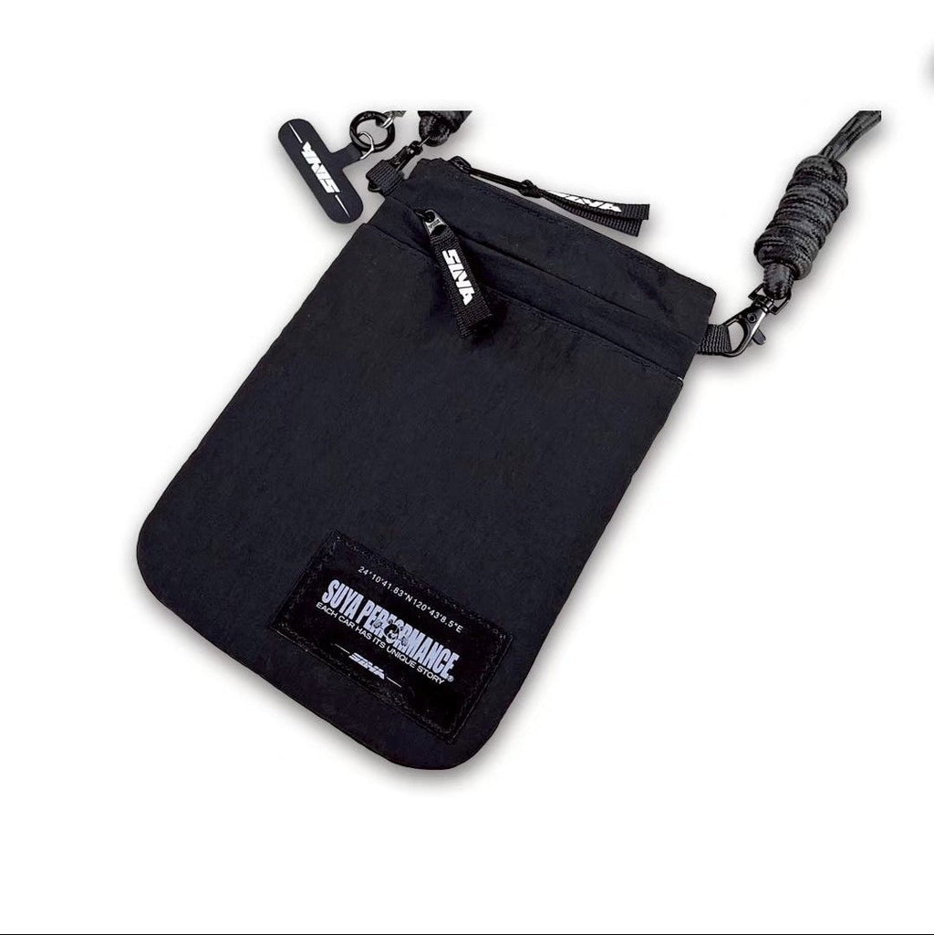 Designed for everyday carry, travel, and car enthusiasts alike, this compact pouch securely holds your smartphone and essentials while keeping them easily accessible. The adjustable strap allows for versatile wear — across the shoulder, around the neck, or attached to your gear or seat.