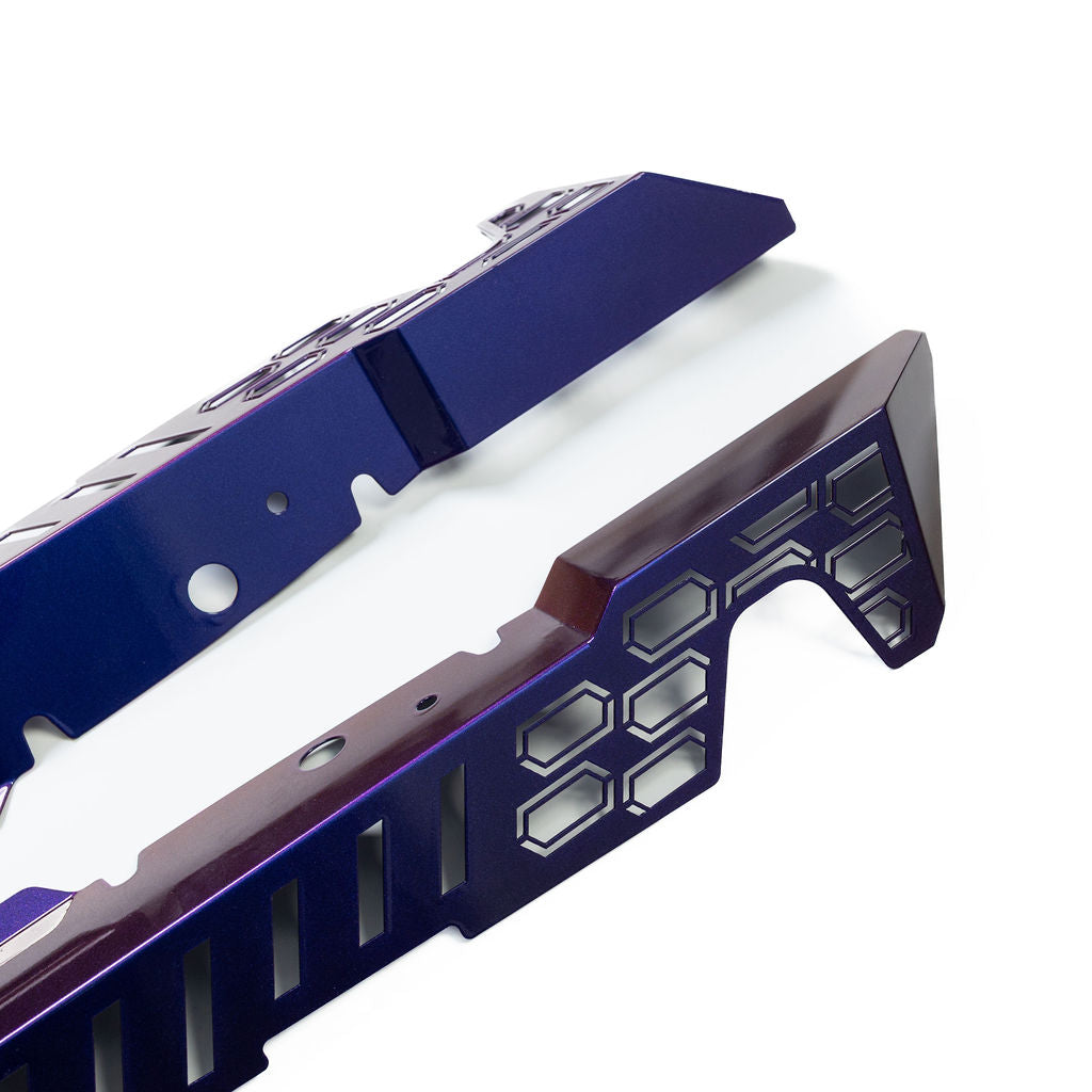 Designed for direct-fit installation, the shrouds utilise factory mounting locations with no cutting or permanent modification required. Whether installed as a functional upgrade or as part of a cohesive SUYA engine bay and aero setup, they deliver a subtle yet effective enhancement to both performance intent and visual detail.